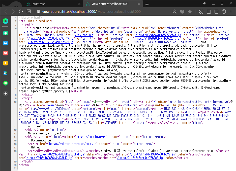 universal 모드에선 이처럼, HTML 소스코드가 형성되어 SSR이 적용된 것을 알 수 있다.