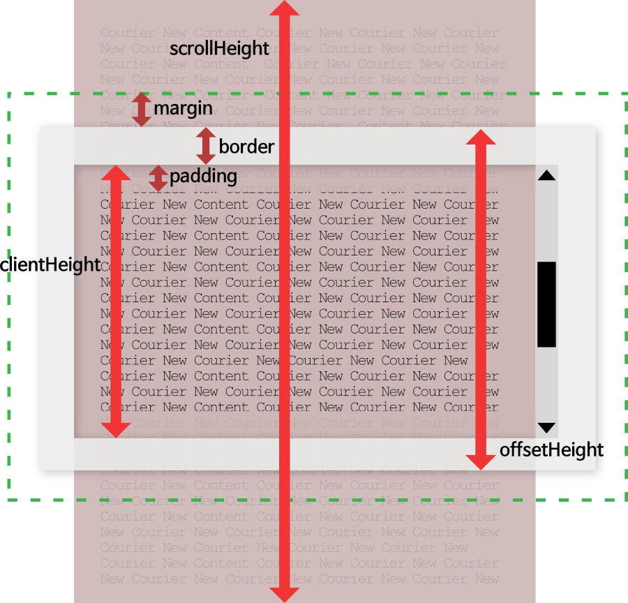 - offsetHeight : 요소의 높이로, content + padding + border/스크롤바/테두리 까지 포함한 전체 높이이다.
