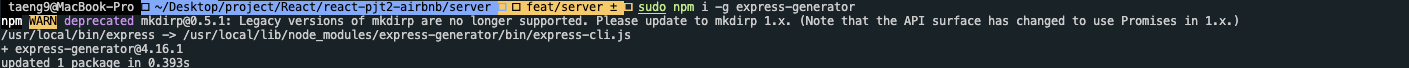 * sudo 명령어는 글로벌 설치시, local의 권한거부 없이 설치하도록 해준다. 그렇기에, npm은 sudo 설치를 지양하기를 권장한다.